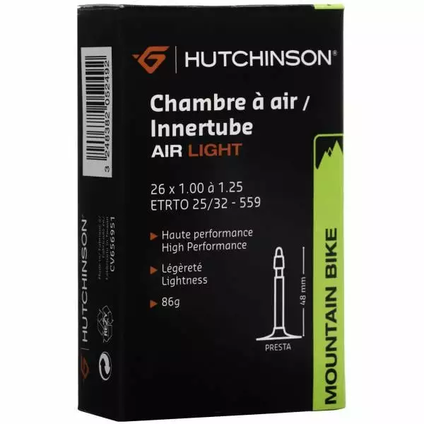 La chambre à air HUTCHINSON Air Light est particulièrement légère, destinée aux utilisateurs en recherche de performance.