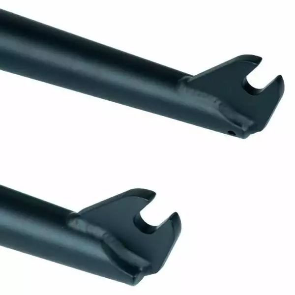 Les fourreaux sont conçus avec un procédé Tapered qui s’affinent vers le bas pour le gain de poids. De plus, l’espace entre les deux bras est assez large pour laisser passer les pneus jusqu’à 2,40″ de section. Elle dispose d’un déport court de 22mm afin de vous offrir un meilleur contrôle lors des Nose Manuals