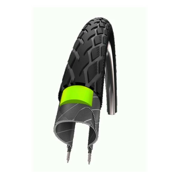 Ce pneu se caractérise par une excellente résistance à l’usure et à la crevaison, notamment grâce à la protection GreenGuard, une couche de 3 mm d’épaisseur en caoutchouc spécial très souple résistant par exemple aux performations des punaises ou des éclats de verres. Par ailleurs, les flancs bénéficient d’un traitement spécial leur permettant de retarder nettement l’apparition de microfissures dues notamment à une pression insuffisante.