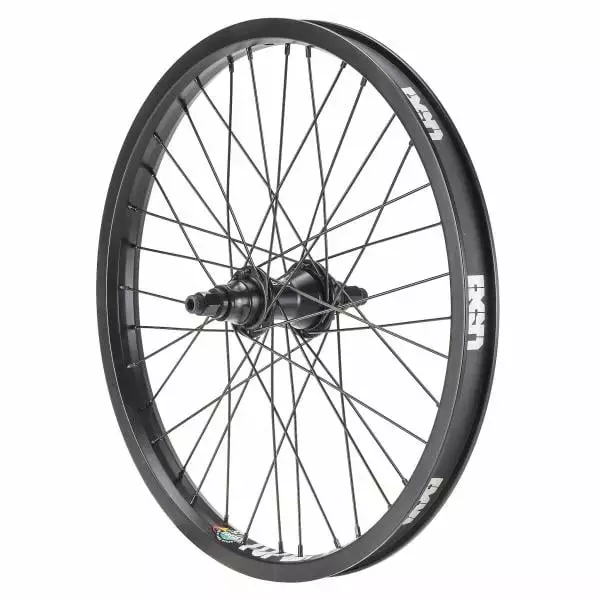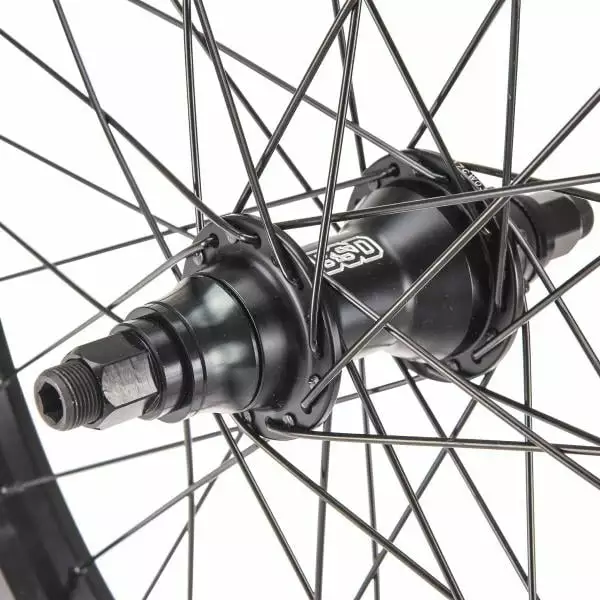 Elle est construite autour d’une jante à double parois NASA en aluminium ultra solide, qui présente des flancs épais et de nombreux renforts pour encaisser les plus grosses réceptions sans risque de casse. Cette jante est associée à un moyeu Street Pro : son corps est en aluminium, son axe robuste en acier chromoly et il intègre des roulements scellés de grande qualité ! Son système à 3 cliquets est très réactif, et ses 36 rayons croisés par quatre ajoutent encore à la solidité et à la rigidité de l’ensemble.