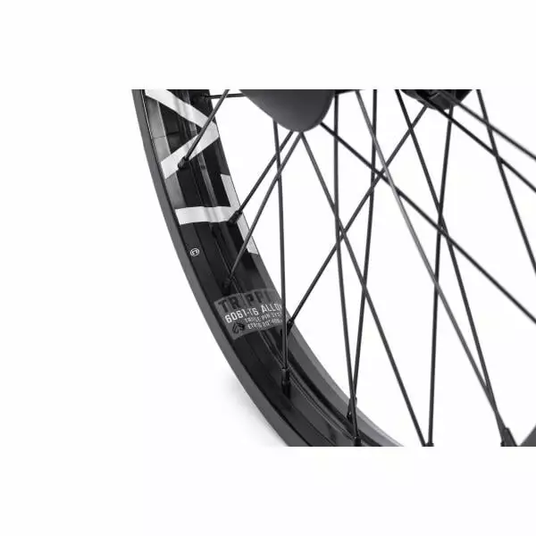 La roue est conçue autour d’une jante en aluminium 6066-T6 à double paroi et large de 38 mm. Les parois latérales sont droites et peuvent donc accueillir un frein à patins.