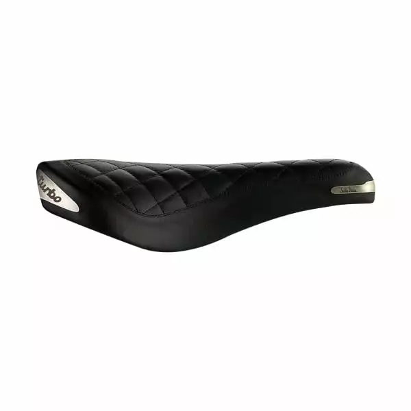 Utilisée dans les années 80 par les plus grands coureurs, elle est aujourd’hui encore symbole d’excellence. Habillée ici de cuir noir matelassé, elle ajoute une touche sublime à votre monture. A l’avant et à l’arrière, les plaques aux noms de la marque et du modèle ajoutent un peu plus au prestige de l’objet.