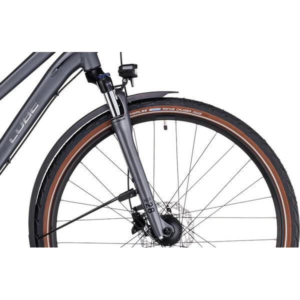 Il combine un cadre aluminium avec technologie Efficient Comfort Geometry offrant une position de conduite très agréable pour les longues randonnées et un équipement fiable et efficace. Il reçoit ainsi une transmission Shimano Deore 3×10 vitesses permettant de passer partout avec sérénité, de puissants freins à disque hydrauliques, ou encore une fourche suspendue Suntour Nex HLO de 63 mm de débatemment amènant une dose de confort supplémentaire en absorbant les vibrations et en amortissant les chocs.