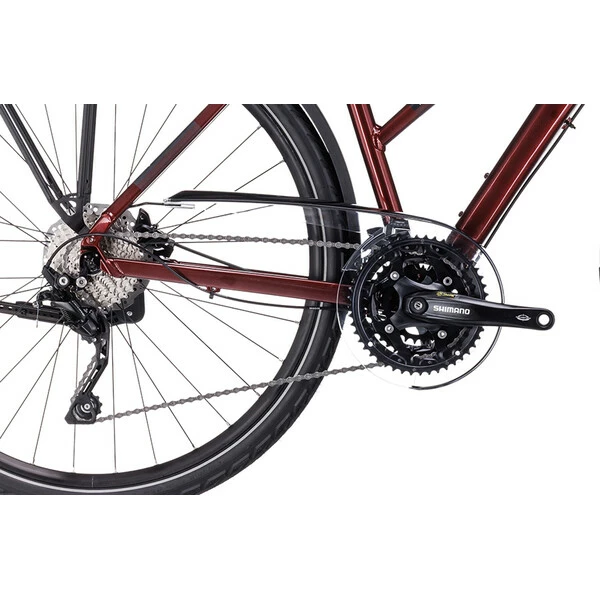 Il combine un cadre aluminium avec technologie Efficient Comfort Geometry offrant une position de conduite très agréable pour les longues randonnées et un équipement fiable et efficace. Il reçoit ainsi une transmission Shimano Deore 3×10 vitesses permettant de passer partout avec sérénité, de puissants freins à disque hydrauliques, ou encore une fourche suspendue Suntour Nex HLO de 63 mm de débatemment amènant une dose de confort supplémentaire en absorbant les vibrations et en amortissant les chocs.
