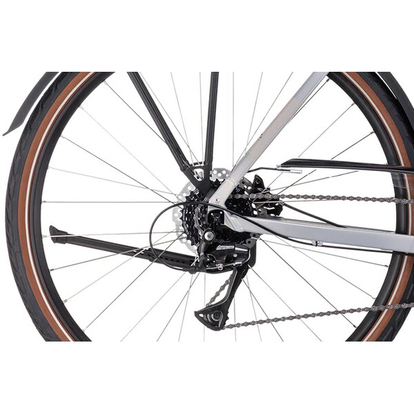 La finition est de grande qualité avec un équipement complet comprenant un élégant porte-bagages, des garde-boue intégraux, une béquille ainsi qu’un système d’éclairage à moyeu dynamo.