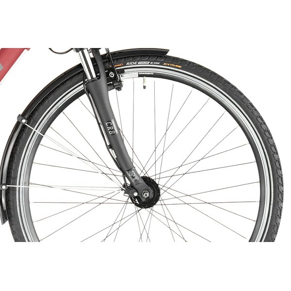 De plus il dispose d’un équipement complet incluant garde-boues, porte-bagages arrière, un système d’éclairage alimenté par un moyeu dynamo ou encore une béquille.