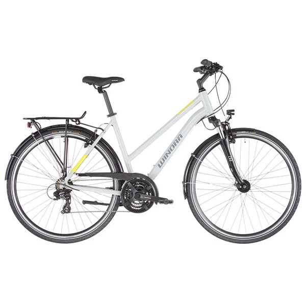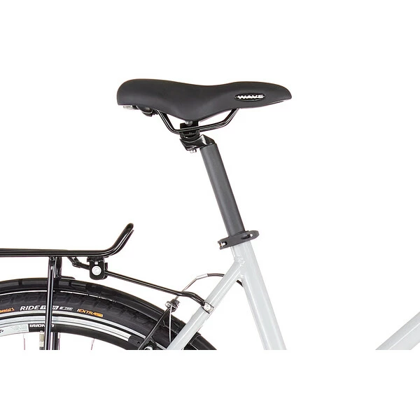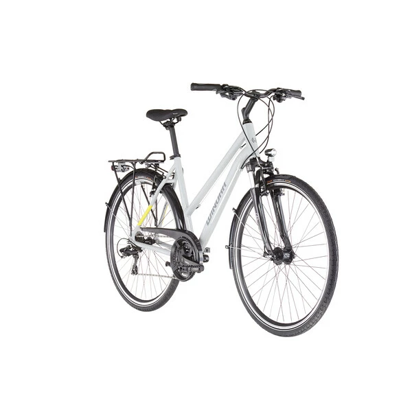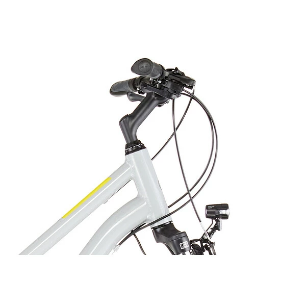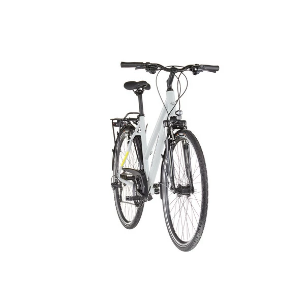 Conçu autour d’un cadre en aluminium 6061 robuste et confortable assurant une position agréable pour la longue distance, il reçoit en plus une fourche suspendue avec ressort en acier offrant 40 mm de débattement afin d’absorber les irrégularités de la route et des sentiers. Avec ses jantes double paroi et ses pneus larges, il pourra en effet s’aventurer sur les chemins de traverse.