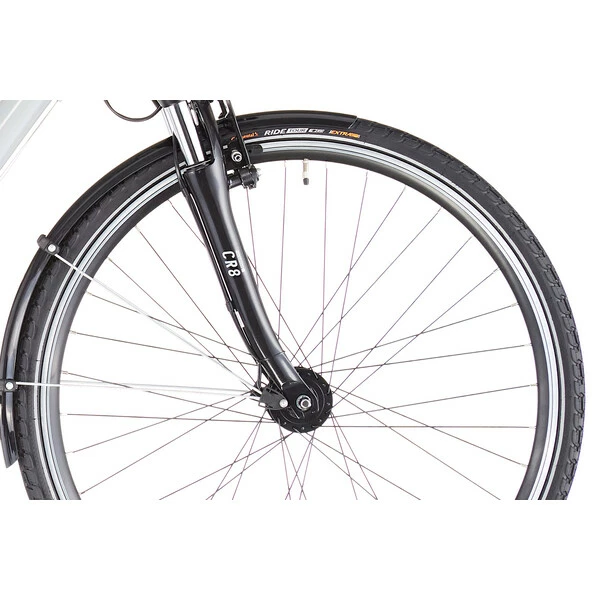 De plus, il dispose d’un équipement complet incluant garde-boues, porte-bagages arrière, un système d’éclairage alimenté par un moyeu dynamo ou encore une béquille.