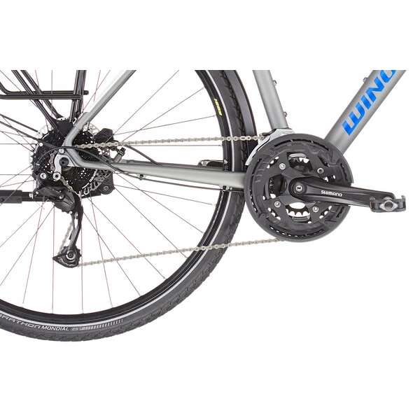 Les composants ont été selectionnés dans une optique de solidité et de fiabilité, notamment avec une transmission Shimano Alivio 3×9 vitesses procurant une grande polyvalence.