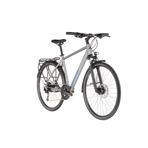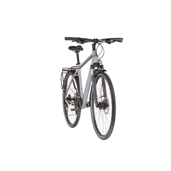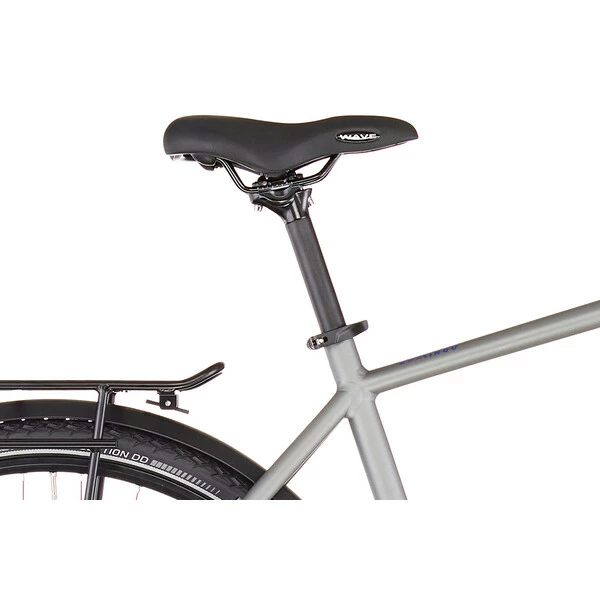 Conçu autour d’un cadre en aluminium 6061 robuste et confortable assurant une position agréable pour la longue distance, il reçoit en plus une fourche suspendue avec ressort en acier offrant 63 mm de débattement afin d’absorber les irrégularités de la route et des sentiers. Avec ses jantes double paroi et ses pneus larges, il pourra en effet s’aventurer sur les chemins de traverse.