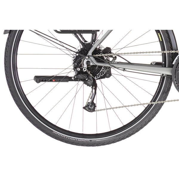 De plus, il dispose d’un équipement complet incluant garde-boues, porte-bagages arrière, un système d’éclairage alimenté par un moyeu dynamo ou encore une béquille.