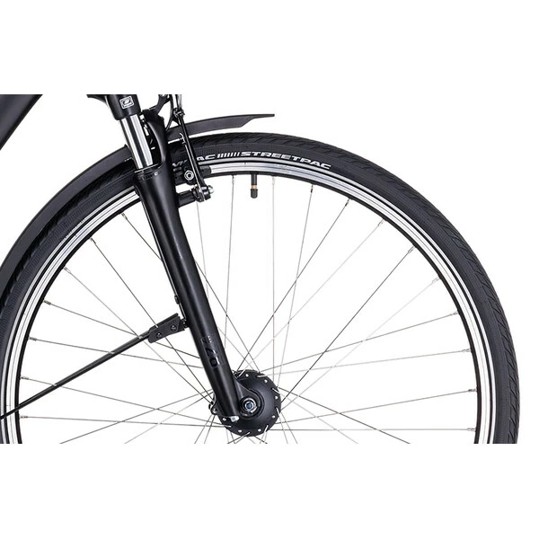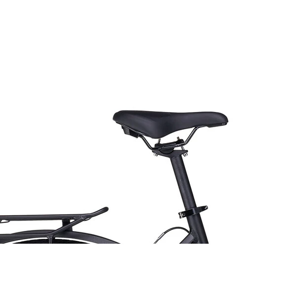 La finition est de grande qualité avec un équipement complet comprenant un élégant porte-bagages, des garde-boue intégraux, une béquillle ainsi qu’un système d’éclairage à moyeu dynamo.