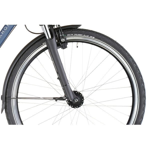 Il est doté d’un équipement complet comprenant un porte-bagages, des garde-boue, des éclairages LED, une dynamo de moyeu et une béquille.