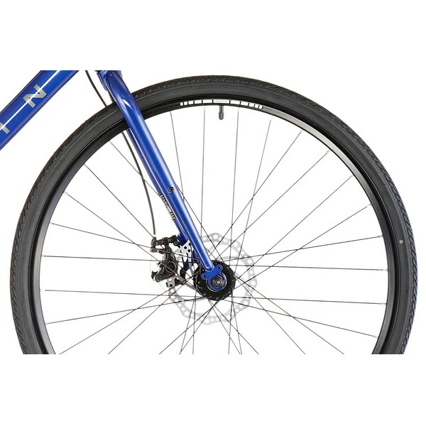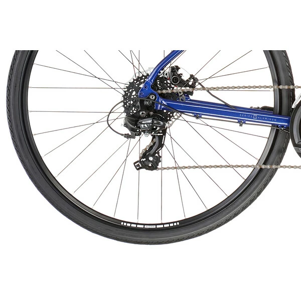 Le cadre du Fairfax est en aluminium et accompagné d’une fourche en acier chromo, promettant efficacité. Sa géométrie met l’accent sur le confort du cycliste : elle propose une position classique, pour plus d’efficacité au pédalage lors de vos sorties hebdomadaires. Ce cadre a surtout l’avantage d’offrir une position stable et rassurante.