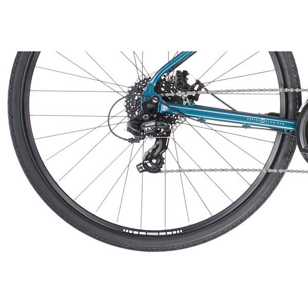 Le cadre du Fairfax est en aluminium et accompagné d’une fourche en acier chromo, promettant efficacité. Sa géométrie met l’accent sur le confort du cycliste : elle propose une position classique, pour plus d’efficacité au pédalage lors de vos sorties hebdomadaires. Ce cadre a surtout l’avantage d’offrir une position stable et rassurante.