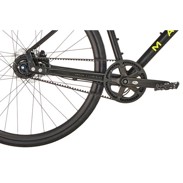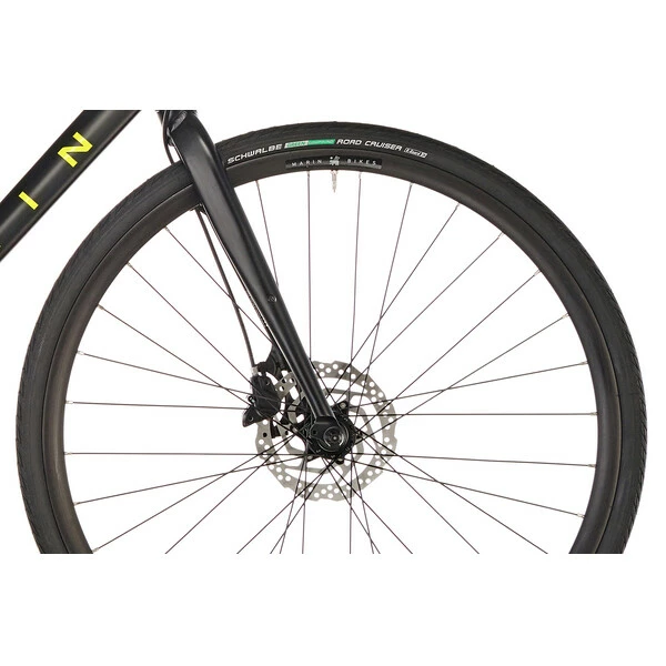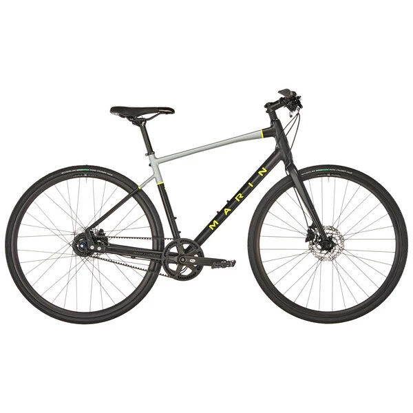 Côté équipement, ce vélo de ville MARIN BIKES propose un entretien minimal, notamment avec une transmission Shimano Nexus de huit vitesses à courroie, des freins à disque hydraulique Tektro et des pneus Vee Tire parés à toute épreuve.