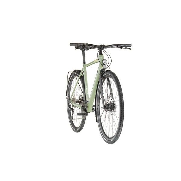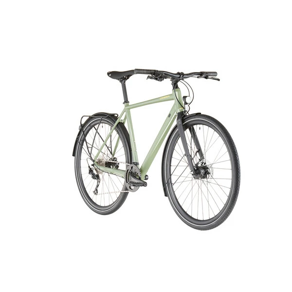 Côté équipement, ce vélo de ville propose un équipement simple et fiable, notamment avec une transmission Shimano 9 vitesses, des freins à disque hydrauliques puissants et des pneus Kenda 700×38 avec protection anti-crevaison parés à toute épreuve.