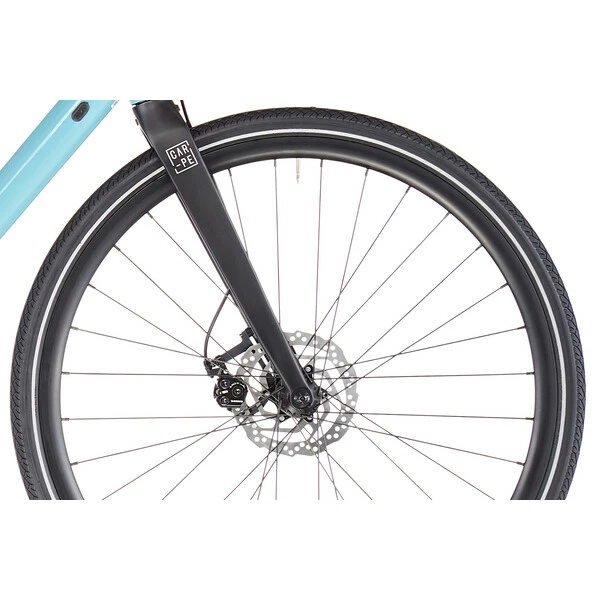 Côté équipement, ce vélo de ville propose un équipement simple et fiable, notamment avec une transmission Shimano 7 vitesses, des freins à disque mécaniques et des pneus Kenda 700×38 avec protection anti-crevaison parés à toute épreuve.