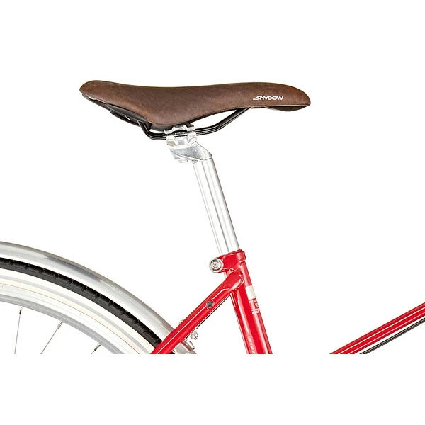 Ce modèle aux accents classiques est à la fois pratique et élégant. Confortable, il est doté du moyeu à vitesses intégrées Shimano Nexus 7 qui offre une large gamme de rapports et ne nécessite que très peu d’entretien en comparaison avec une transmission classique. Il dispose également de freins sur jante et d’un frein à rétropédalage ultra-efficace.