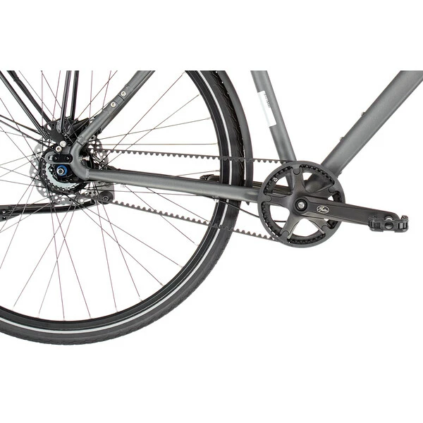 Conçu autour d’un cadre en aluminium rigide et robuste, il reçoit dans cette version une transmission basée autour du moyeu à vitesses intégrées Shimano Nexus 8 vitesses entraînée par courroie, facile à utiliser et ne nécessitant quasiment aucun entretien, et de très efficaces freins à disque hydrauliques Radius.