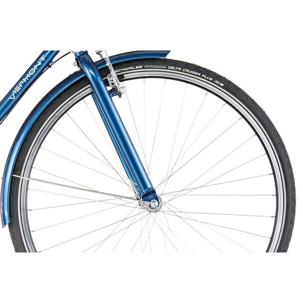 Les pneus de marque Schwalbe sont dans la même veine : ils sont particulièrement résistants aux éclats de verre et leur bande réfléchissante vous aide à rester visible. Enfin, les garde-boue et le garde-chaîne empêchent la pluie et la saleté d’atteindre vos vêtements. Avec le Vermont London, vous arrivez à destination sans trop d’efforts, et avec beaucoup de style !