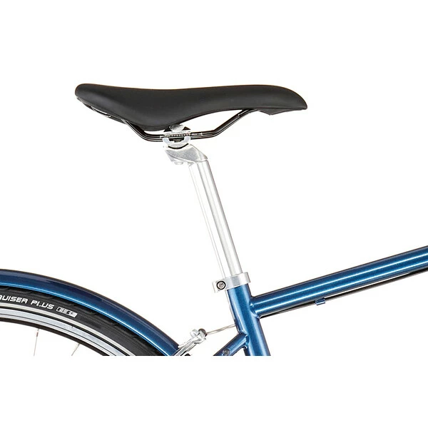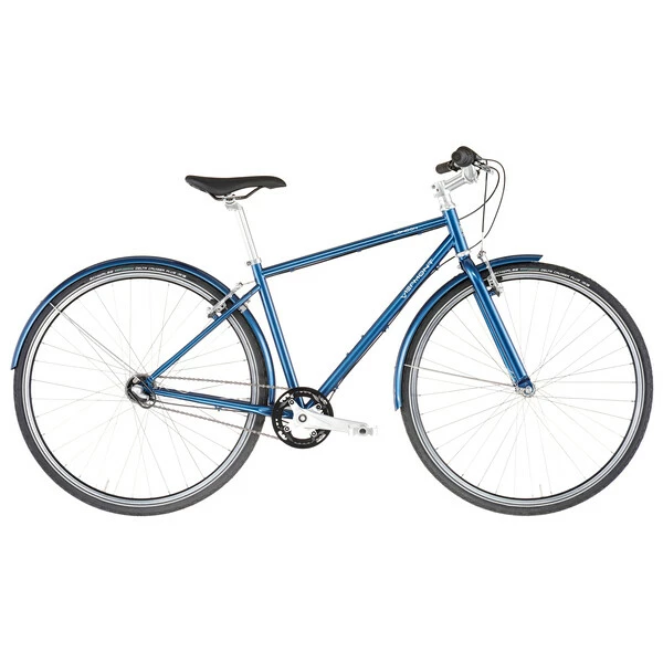 Vous profiterez également longtemps de son design classique et discret. L’équipement du vélo est parfaitement adapté pour faire de nombreux petits tours en ville sans avoir à trop réfléchir. Installez-vous simplement sur la confortable selle et donnez votre premier coup de pédale ! Grâce au moyeu à vitesses intégrées, vous pouvez changer de vitesse rapidement, même au feu rouge, et grimper sur toutes les collines. Un bonus supplémentaire : ce type de transmission nécessite très peu d’entretien, car toutes les pièces importantes sont cachées dans le moyeu.