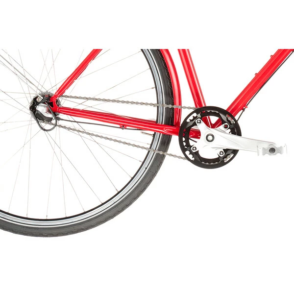 Vous profiterez également longtemps de son design classique et discret. L’équipement du vélo est parfaitement adapté pour faire de nombreux petits tours en ville sans avoir à trop réfléchir. Installez-vous simplement sur la confortable selle et donnez votre premier coup de pédale ! Grâce au moyeu à vitesses intégrées, vous pouvez changer de vitesse rapidement, même au feu rouge, et grimper sur toutes les collines. Un bonus supplémentaire : ce type de transmission nécessite très peu d’entretien, car toutes les pièces importantes sont cachées dans le moyeu.