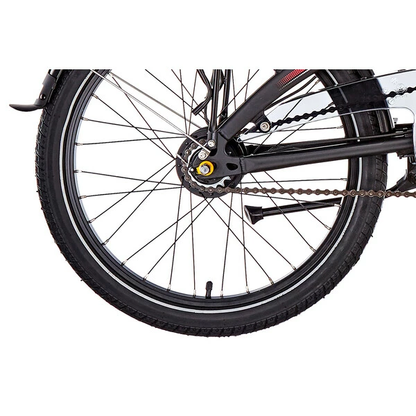 Côté équipement, on note une transmission dans le moyeu arirère Shimano Nexus 7 qui demande très peu d’entretien et elle est suffisante pour les parcours en ville. Enfin, des garde-boues et le porte-bagages sont présents pour préserver vos vêtements lorsque la route est humide et vous déplacer en toute tranquillité.