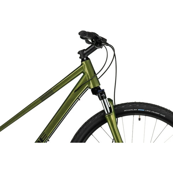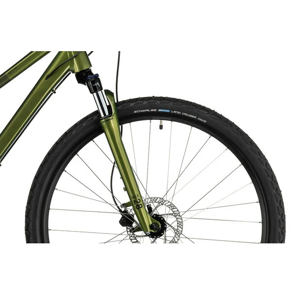 Doté d’un cadre en aluminium et de composants fiables dont une fourche Suntour, c’est un vélo confortable qui nécessite que peu d’entretien. Equipé d’un groupe Shimano avec 24 vitesses et de freins hydrauliques, il est prêt pour vous amener partout et peu importe l’inclinaison de la route ou du chemin.